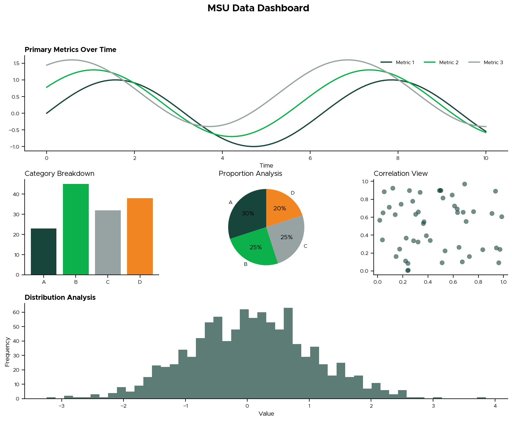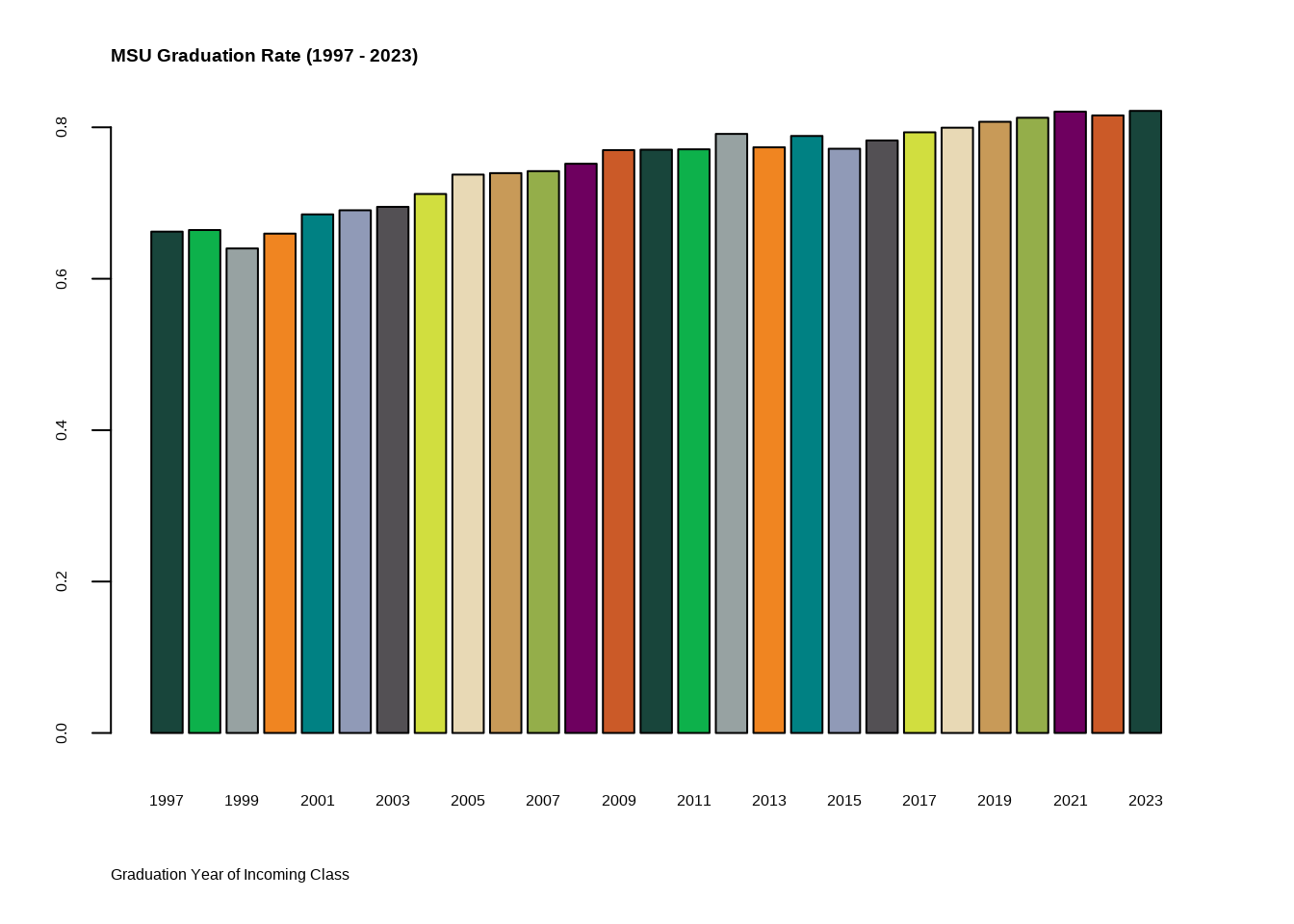 The MSUthemes packages are available for both R and Python. The visualizations shown here were developed during my work in the Office of the Vice Provost for Enrollment and Academic Strategic Planning at Michigan State University, demonstrating real-world applications of consistent theming across analytical workflows.